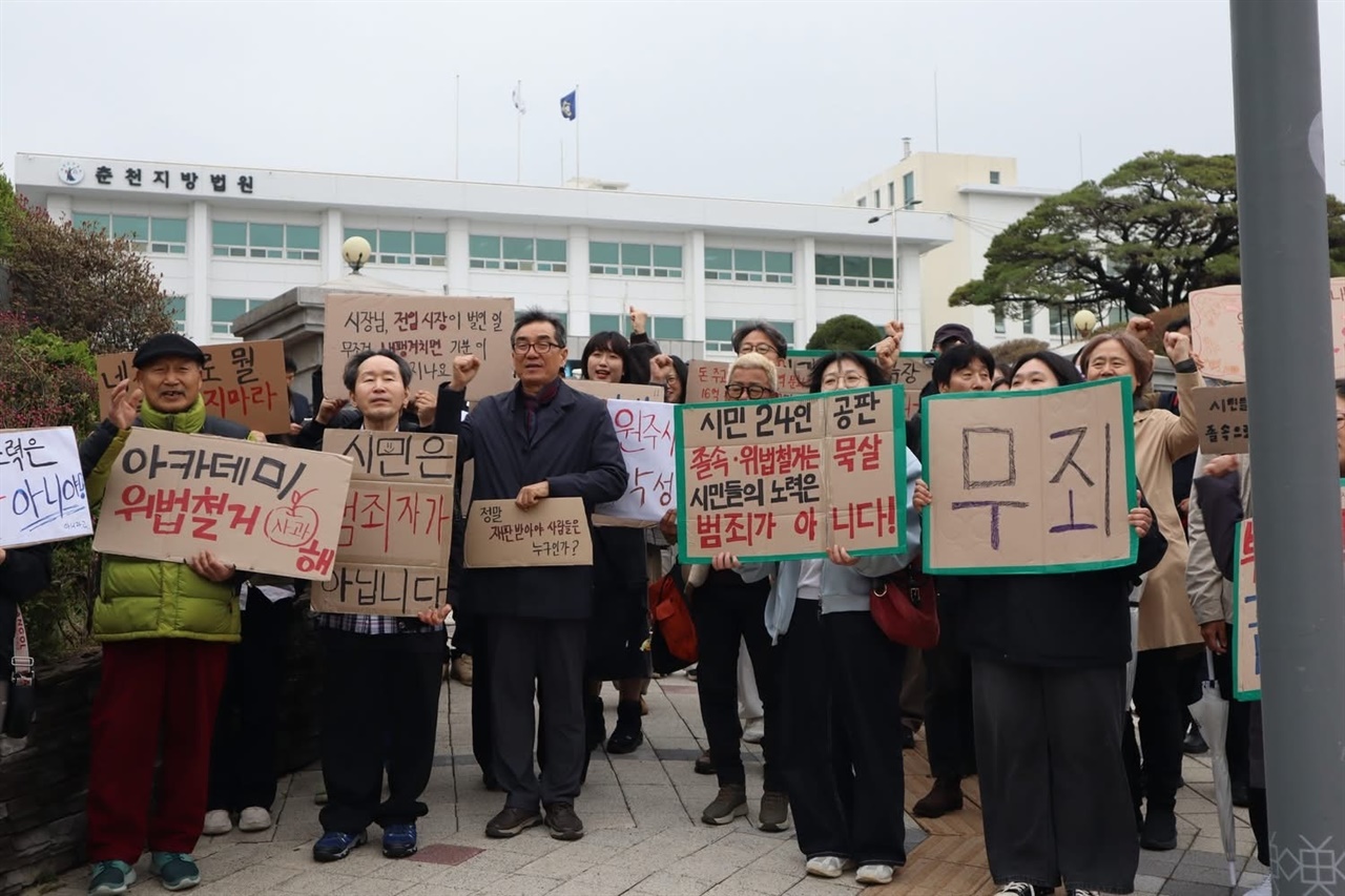 10일 춘천지법 형사1-2부(우관제 부장판사)는 아카데미의 친구들 범시민연대 및 영화인 등 23인에 대한 업무방해 등 혐의 사건 항소심 선고 공판에서 검찰의 항소를 기각하고 원심과 마찬가지로 전원 무죄를 선고했다.